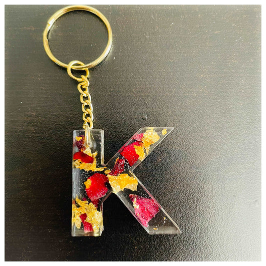 Resin Alphabet keychains with real rose petals and glitter flakes to make...