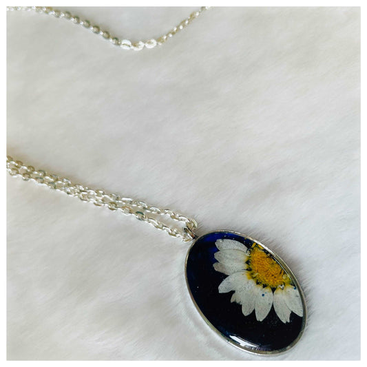 41% offBlack White Daisy Oval Pendant