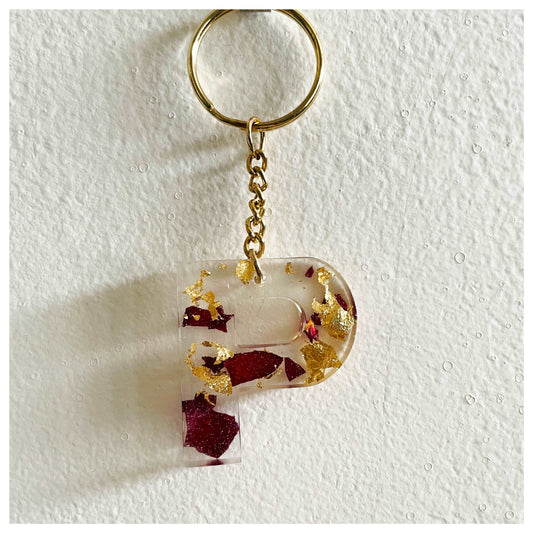 Resin Alphabet keychains with real rose petals and glitter flakes to make...